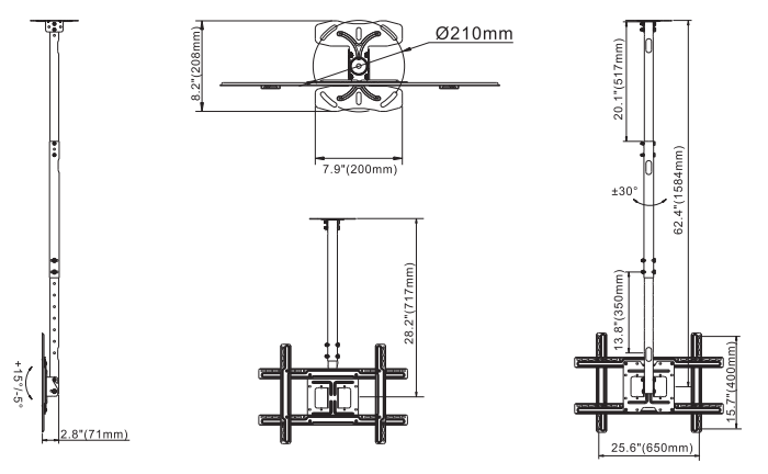 717 – 1584 mm |