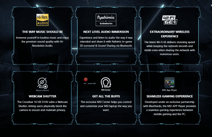 - Bên cạnh đó, Crosshair 16 HX cũng được tích hợp Bluetooth 5.3 giúp tăng cường khả năng truyền tải dữ liệu với tốc độ cao, đồng thời tiết kiệm pin và ổn định hơn khi kết nối. Dễ dàng kết nối với các thiết bị như tai nghe không dây, loa Bluetooth, bàn phím rời, chuột không dây hoặc điện thoại thông minh một cách mượt mà và nhanh chóng.