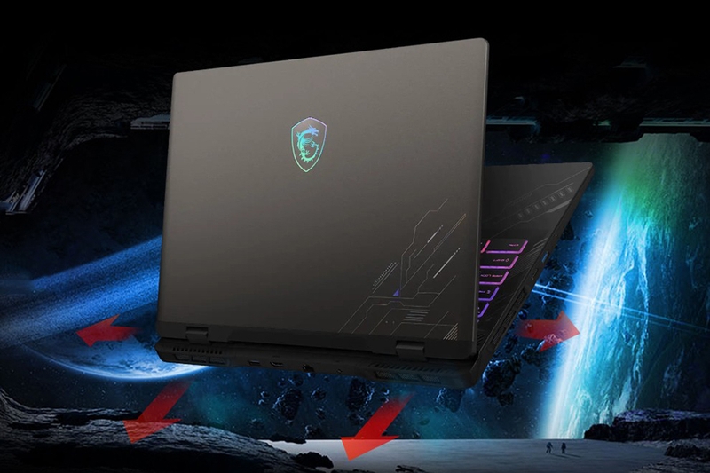 Bố trí hệ thống tản nhiệt được đặt chủ yếu ở cạnh sau và hai bên thân máy, giúp tạo luồng gió đối lưu hiệu quả mà vẫn duy trì được không gian làm việc gọn gàng. Thiết kế này phát huy tác dụng khi cần chơi game hoặc xử lý tác vụ nặng trong thời gian dài.