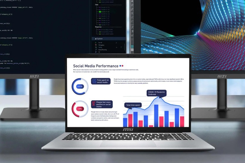 Sở hữu màn hình kích thước 15.6 inch với độ phân giải Full HD (1920 x 1080 pixels), MSI Modern 15 mang lại không gian hiển thị rộng rãi, phù hợp với các tác vụ yêu cầu quan sát nhiều thông tin như làm bảng tính, xử lý tài liệu hay chỉnh sửa văn bản.