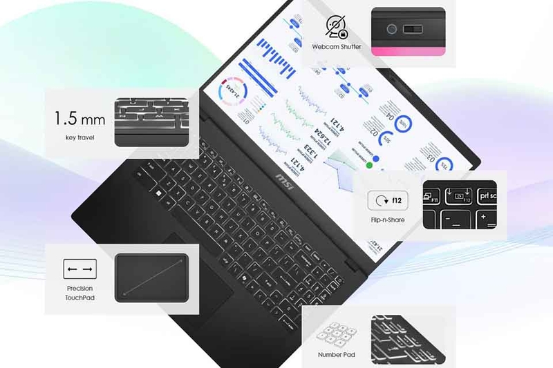 MSI đã đưa lên sản phẩm này hệ thống loa cho chất âm rõ ràng, đủ dùng trong các tình huống học trực tuyến, nghe nhạc, xem video hoặc gọi hội nghị. Các tần số trung và cao được tái tạo tương đối tốt, đảm bảo tái giọng nói sắc nét trong các cuộc gọi video call. Ở môi trường yên tĩnh, các loa tích hợp có thể đáp ứng hiệu quả cho hầu hết nhu cầu cá nhân. Khi cần trải nghiệm âm thanh sống động hơn, người dùng có thể sử dụng tai nghe thông qua jack 3.5mm tích hợp.