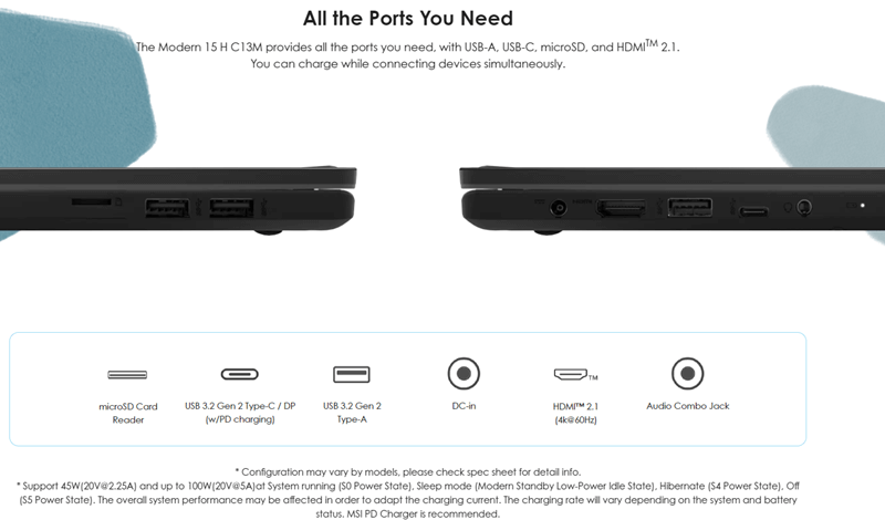 Cổng kết nối MSI Modern 15 (Ảnh minh họa)