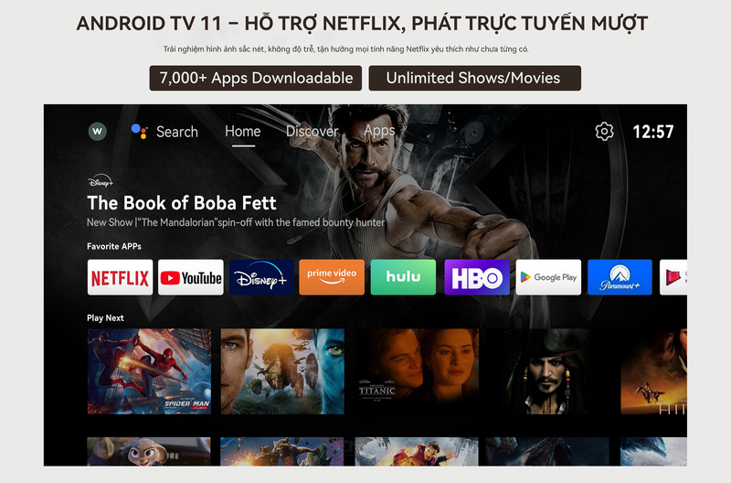 Máy chiếu chạy trên hệ điều hành Android TV 11, cho phép truy cập kho ứng dụng với hơn 7.000 app khác nhau. Người dùng có thể cài đặt Netflix, YouTube, Disney+, Prime Video, HBO Max và nhiều dịch vụ trực tuyến phổ biến khác. Trải nghiệm xem trở nên đa dạng và mượt mà, đáp ứng mọi nhu cầu giải trí.