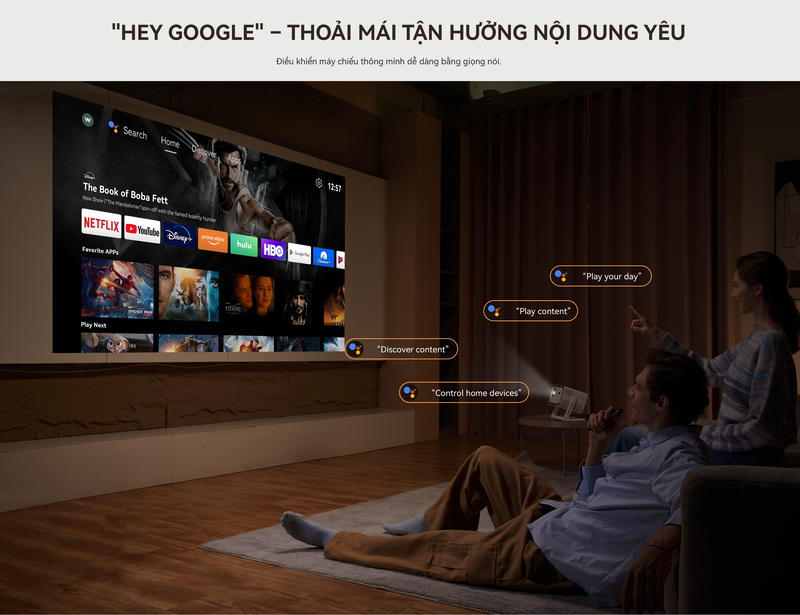 Wanbo Vali 1 hỗ trợ điều khiển bằng giọng nói thông qua Google Assistant. Người dùng có thể tìm kiếm phim, mở ứng dụng hoặc quản lý nội dung chỉ bằng những câu lệnh đơn giản. Sự hỗ trợ từ trợ lý ảo giúp việc sử dụng máy chiếu thuận tiện và tiết kiệm thời gian hơn.