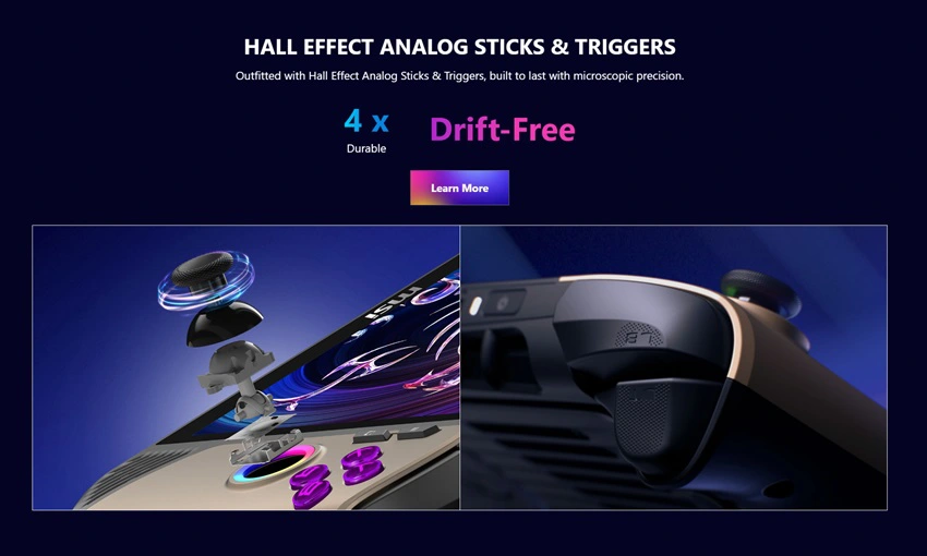MSI Claw được trang bị hệ thống nút điều khiển Hall Effect Analog Sticks & Triggers, mang lại độ chính xác cực cao và độ bền vượt trội hơn gấp 4 lần so với cần analog truyền thống. Hall Effect sử dụng cảm biến từ thay vì tiếp xúc vật lý nên loại bỏ hoàn toàn tình trạng drift (lỗi lệch hướng) thường gặp, đảm bảo trải nghiệm chơi game mượt mà, ổn định theo thời gian.