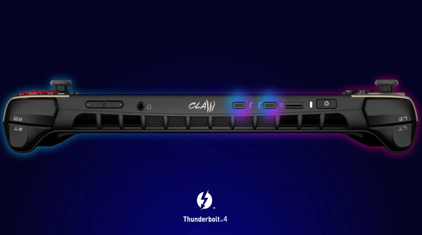 Các cổng kết nối ngoại vi của MSI Claw được bố trí gọn gàng ở phía trên bao gồm: