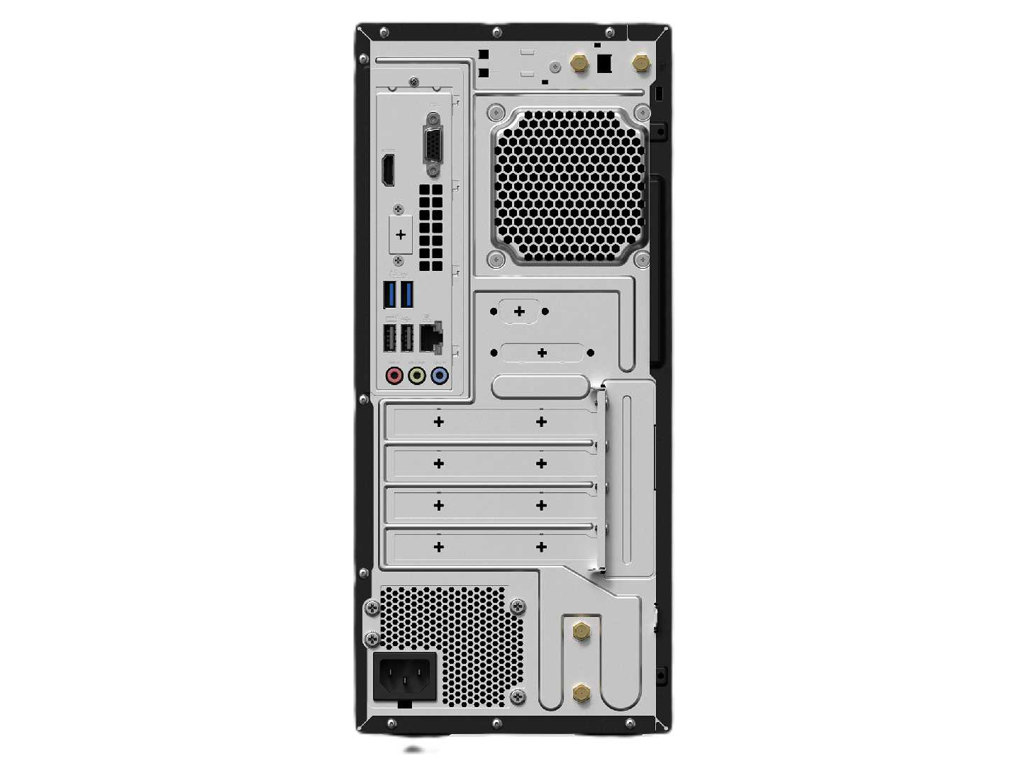 | Cổng giao tiếp sau | 1x RJ45 Gigabit Ethernet 1x HDMI 1.4 1x VGA Port 1x 7.1 channel audio (3 ports) 1x Kensington lock 1x Padlock loop 2x USB 2.0 Type-A 2x USB 3.2 Gen 1 Type-A |