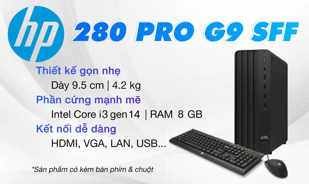 Máy tính để bàn đồng bộ HP 280 Pro G9 SFF_ AY2F6PT (Core i3 14100 | 8GB DDR4 | 512GB SSD | WLan_BT | KB/M | Win11SL/ 1yr)