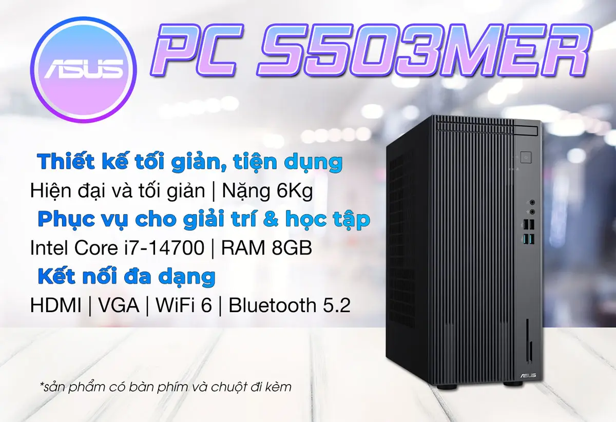 PC Asus S503MER-714700012W (i7-14700/8GB/512GB/330W/WIFI6+BT/Win 11/2Y OnSite Servicey/Gray)